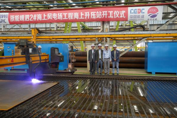 浙能國(guó)電投嵊泗2#海上升壓站開工儀式在業(yè)主單位和各參建單位代表共同聯(lián)手按下點(diǎn)火按鈕并成功開始切割后圓滿結(jié)束。