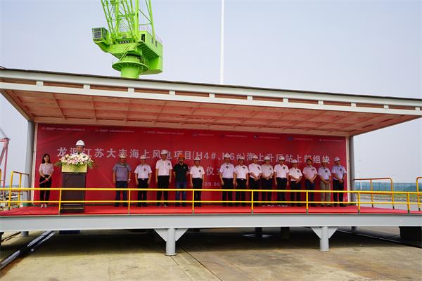2021年9月6日,龍源大豐H4、H6兩座海上升壓站及H4海上輔助平臺,在韓通贏吉重工碼頭舉行了熱烈而簡短的發(fā)運儀式。儀式現(xiàn)場,“新振2”、“新振3”兩條運輸船舶整裝待發(fā),這是海洋水建20.06開工至今交付的第19座升壓站,國內(nèi)升壓站交付完工量第一。其中,4座升壓站以上部組塊方式交付、15座升壓站包含了下部結(jié)構(gòu)導(dǎo)管架的制作與安裝、上部組塊的制作、運輸、安裝與調(diào)試。為海上風電“搶裝潮”贏得了先機、為龍源大豐H4、H6海上風電場全容量并網(wǎng)發(fā)電創(chuàng)造了有利條件。儀式在中國電建集團華東勘測設(shè)計研究院有限公司、中國船級社江蘇分社以及南通辦事處、上海東華建設(shè)管理有限公司等各參建方代表以及龍源業(yè)主的發(fā)言和祝賀聲中完美落幕。